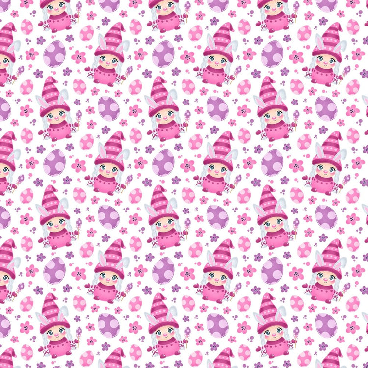 Cartoon Girl Easter Bunny Gnome Fabric - Pink