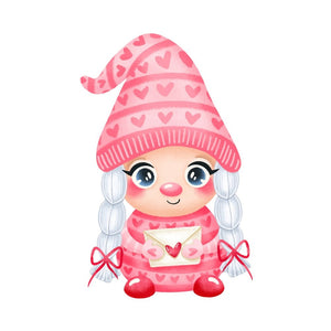The Cartoon Gnome Girl With Love Letter Fabric Panel is part of the Cartoon Valentine Gnomes Fabric Collection printed by Sewing Parts Online. Digitally Printed on 100% cotton. This panel is available in 6 different sizes: