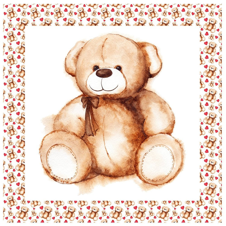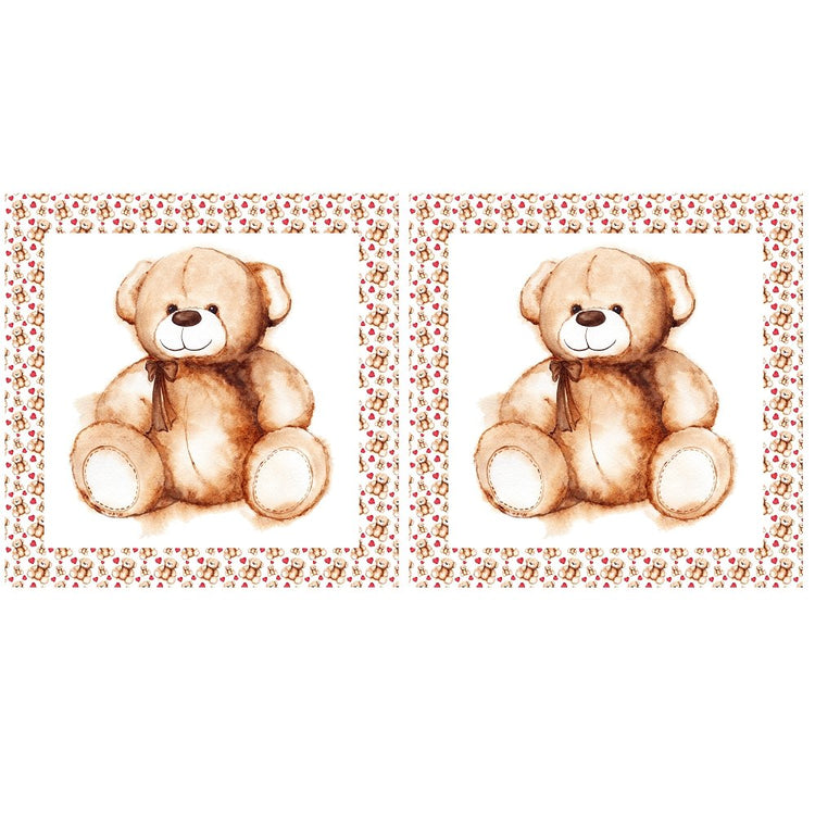 The Cartoon Lovely Teddy Bear Pillow Panel is a part of the Pillow Panels Fabric Collection printed by Sew Creative Fabrics. Our pillow panels are designed to be extremely simple to put together, some other brands do not provide a 1/4-inch seam allowance, we provide a 2-inch border. Each pillow panel contains 2 pillow panels side by side. You can use the second panel as backing or purchase a yard of Tossed Lovely Teddy Bear & Hearts Fabric to have the backing the same as the border print.