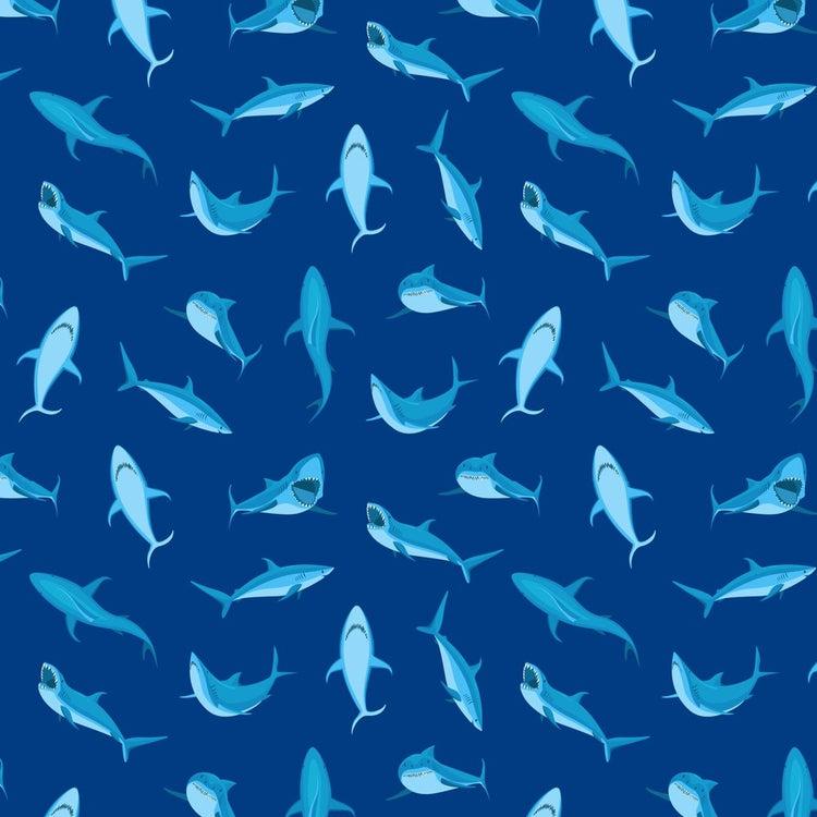 The Blue Cartoon Shark Fabric is a part of the Animal Fabric Collection printed by Sew Creative Fabrics. Digitally Printed on 100% cotton.