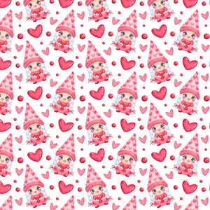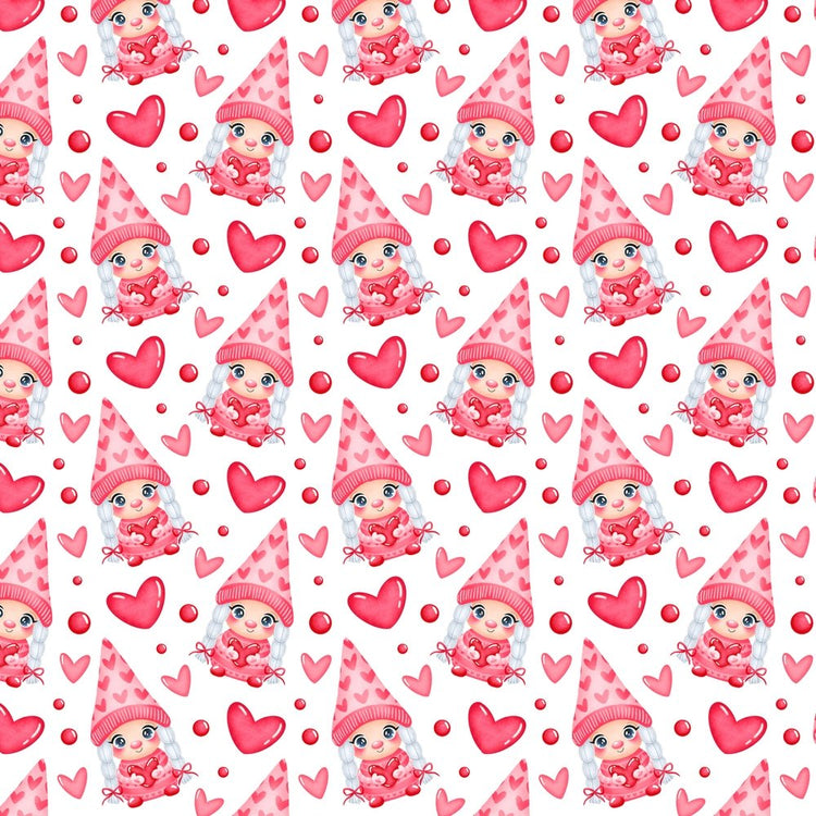 Cartoon Valentine Girl Gnome In Love Fabric - Pink Details
