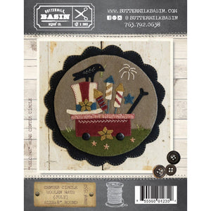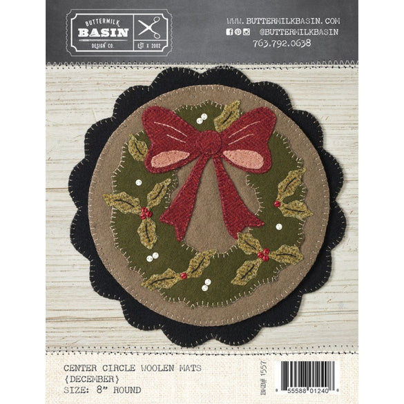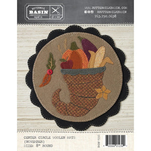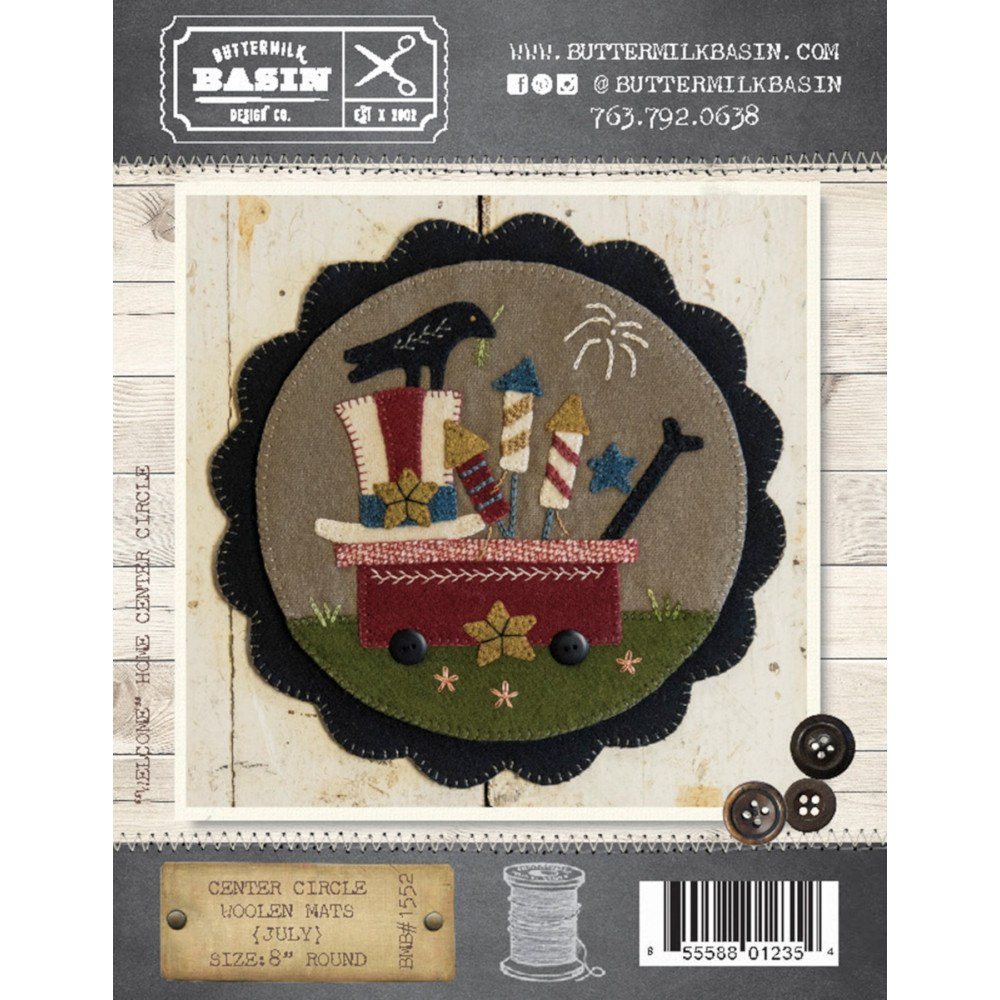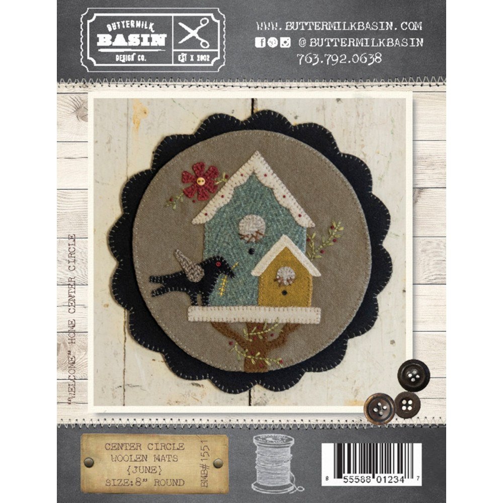 Buttermilk Basin's Center Circle Woolen Mats are a block of the month (BOM) pattern series. Each circular block is made entirely of wool and features an applique design that embodies the spirit of that month. Decorate your home each month with a woolen wall hanging. The Center Circle Pattern Series can also be used in combination with the Welcome Home Wall Hanging Pattern in which the 'O' in Home can be easily swapped out each month for one of the Center Circle blocks. The Welcome Home Wall Hanging Pattern is sold separately.