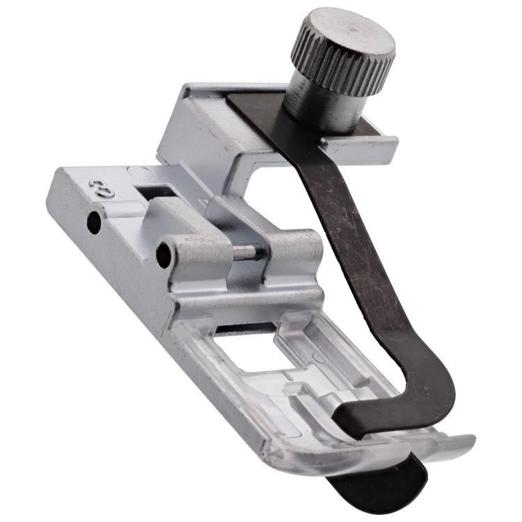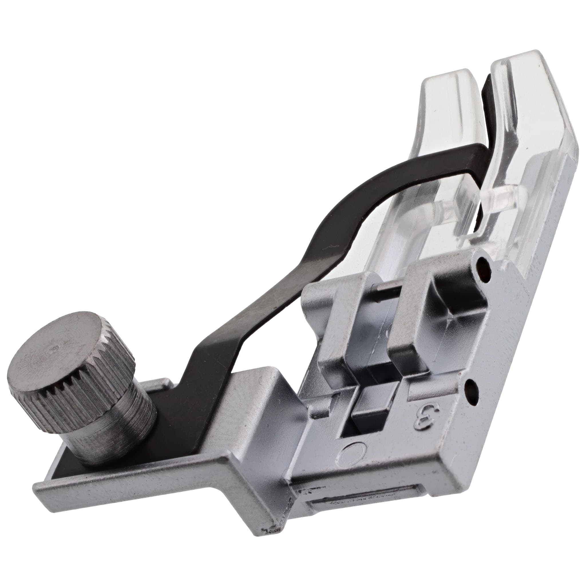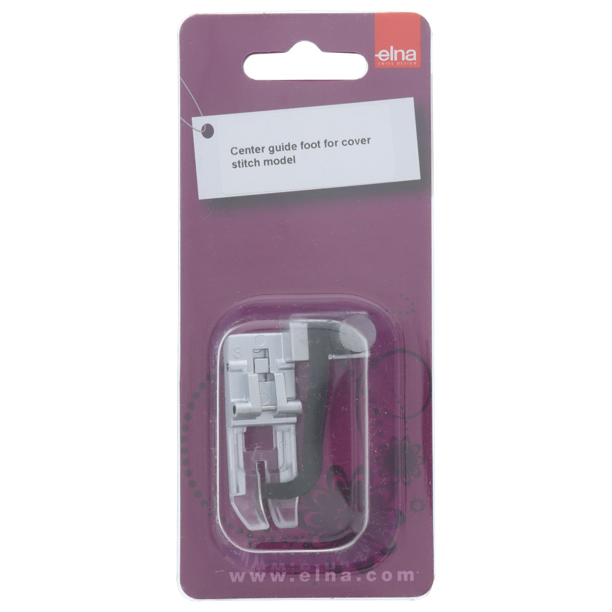 The Center Guide foot is mainly used to line up the center of a two- or three-needle stitch with a previously sewn seam. This guide is practical, mainly in sportswear. It simply gives you a finished decorative stitch.