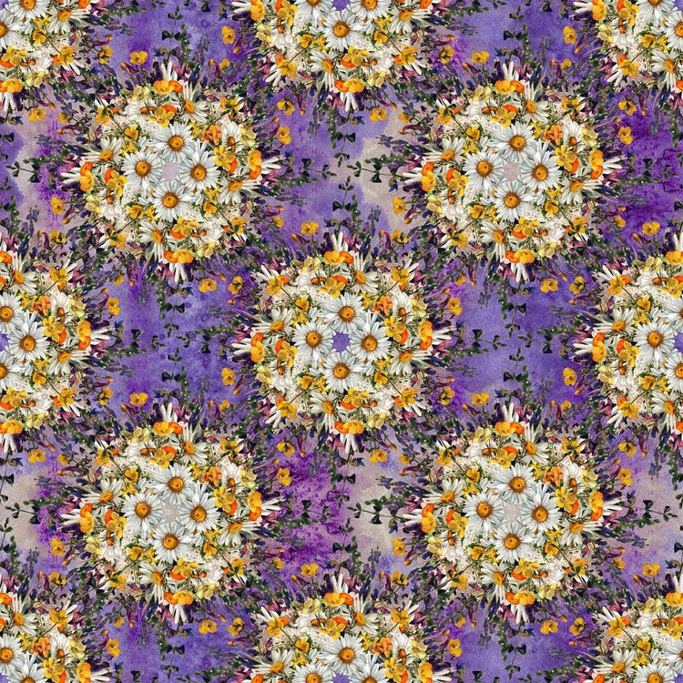 The Purple Chamomile Flowers Bouquets Fabric is part of the Chamomile Flowers Fabric Collection printed by Sew Creative Fabrics. Digitally Printed on 100% cotton.