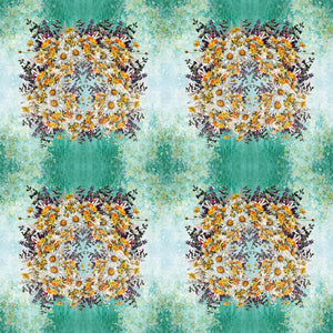 The Green Chamomile Flowers Mirrored Bouquets Fabric is part of the Chamomile Flowers Fabric Collection printed by Sew Creative Fabrics. Digitally Printed on 100% cotton.