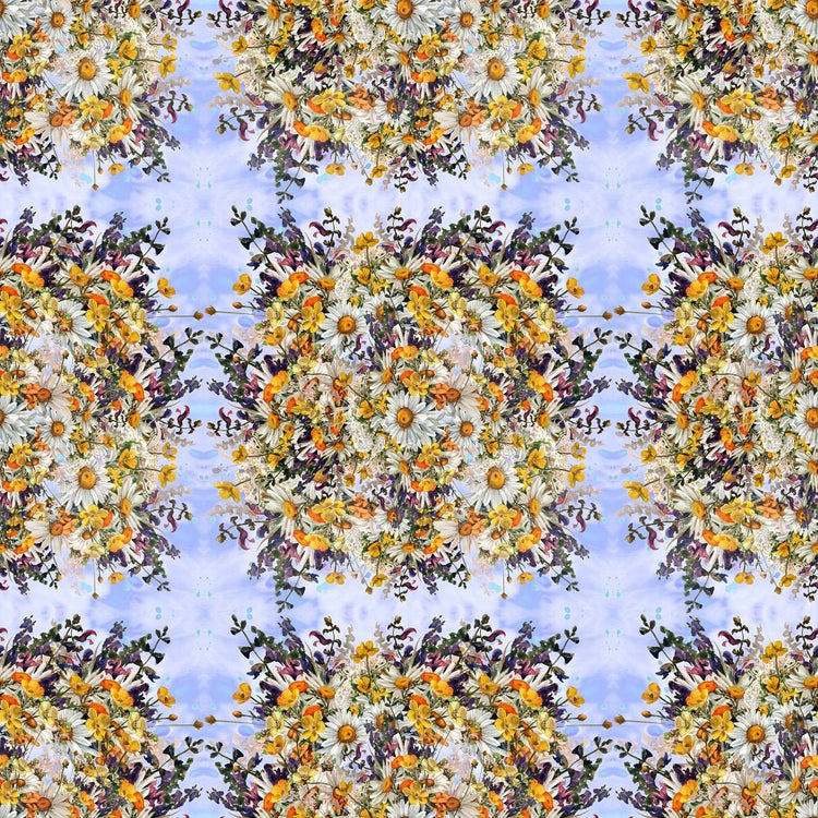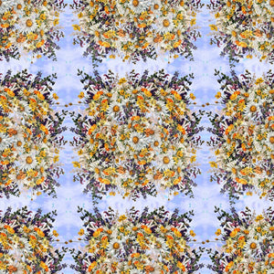 The Lavender Chamomile Flowers Square Bouquets Fabric is part of the Chamomile Flowers Fabric Collection printed by Sew Creative Fabrics. Digitally Printed on 100% cotton.