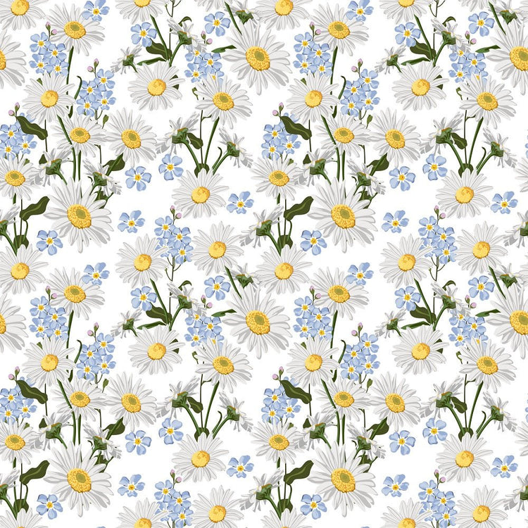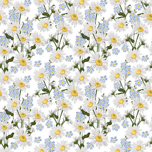 The Chamomile & Forget Me Nots Floral Fabric is a part of the Floral Fabric Collection is printed by Sew Creative Fabrics. Digitally Printed on 100% cotton and measures 43-45" wide. Sew Creative Fabrics prints are only available through Sewing Parts Online, not sold in stores or anywhere else online. * Proudly Manufactured in Dickson, Tennessee USA! *