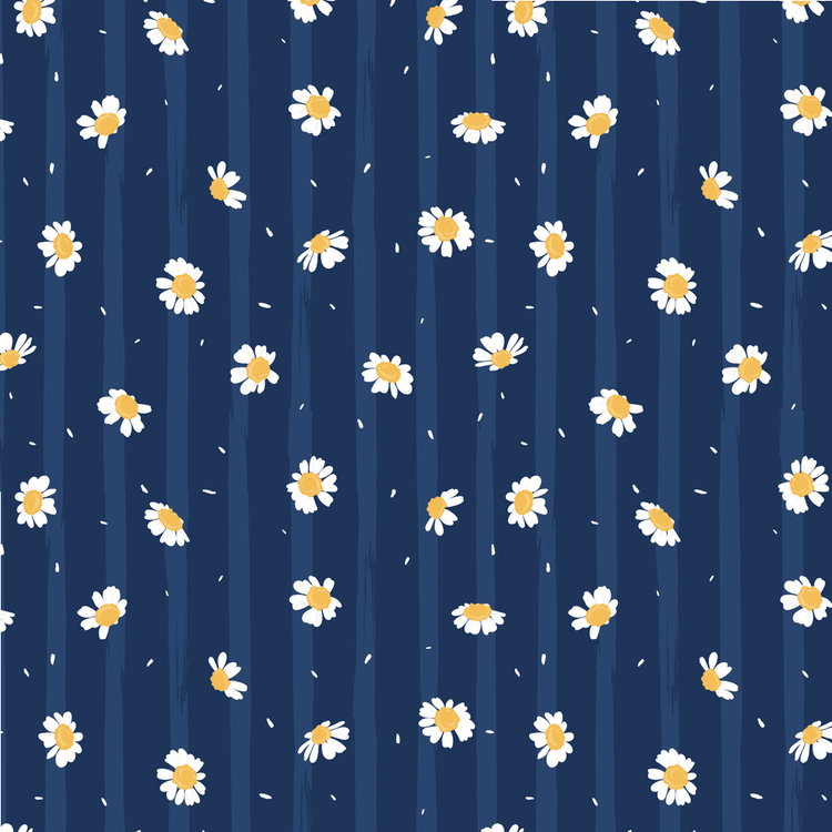 The Navy Chamomile Stripes Fabric is part of the Trendy Florals Fabric Collection printed by Sew Creative Fabrics. Digitally Printed on 100% cotton.