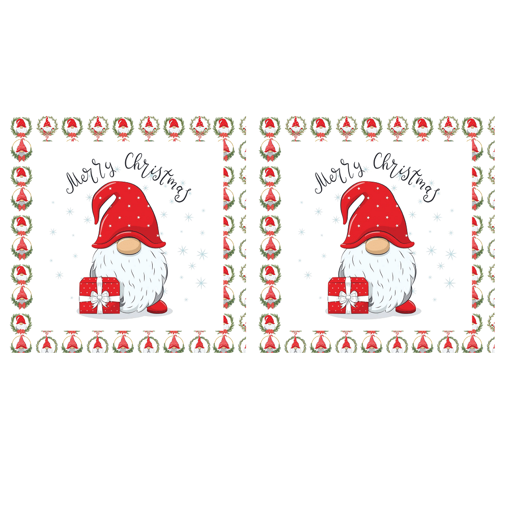 The Cheerful Gnome With Christmas Present Pillow Panels is a part of the Holiday Gnomes Fabric Collection printed by Sew Creative Fabrics. Our pillow panels are designed to be extremely simple to put together, some other brands do not provide a 1/4-inch seam allowance, we provide a 2-inch border. Each pillow panel contains 2 pillow panels side by side. You can use the second panel as backing or purchase a yard of Holiday Gnomes in Wreaths Allover Fabric to have the backing the same as the border print.