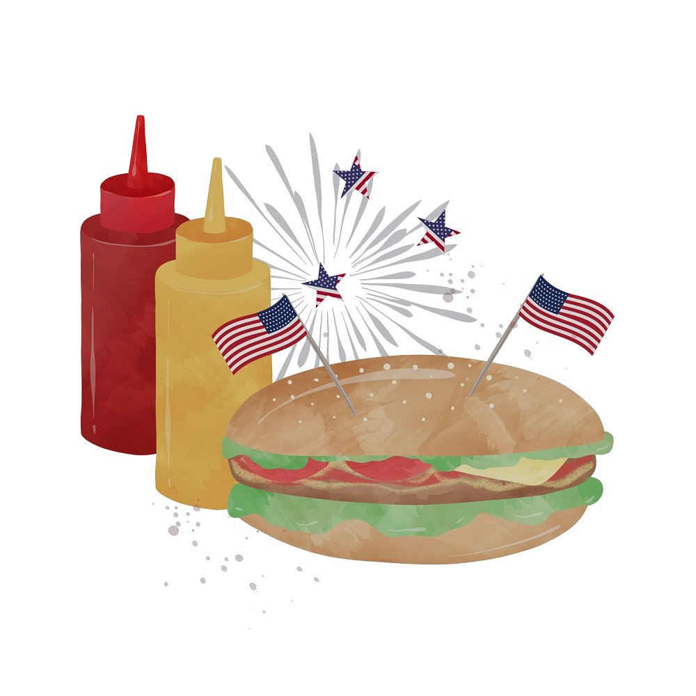 The Cheeseburger & Condiments Fabric Panel is part of the Celebrate Freedom Fabric Collection printed by Sewing Parts Online. Digitally Printed on 100% cotton. This panel is available in 6 different sizes: