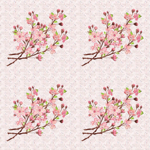 Cherry Blossom Bouquet on Striped Fabric - Pink