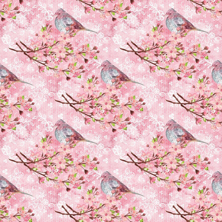 Cherry Blossom Bouquet with Perched Cardinal Fabric - Pink Details