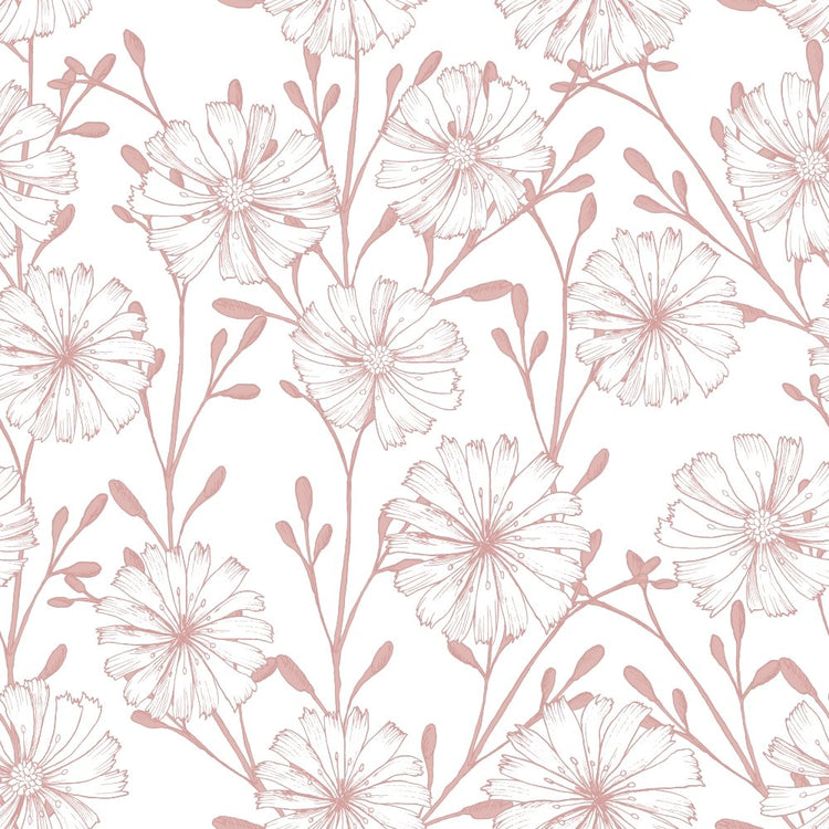 The Rose Gold Chicory Floral Fabric is printed by Sew Creative Fabrics. Digitally Printed on 100% cotton and measures 43-44" wide.