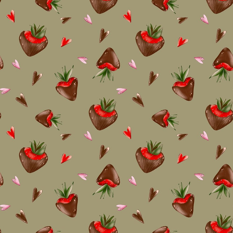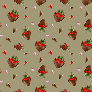 Chocolate Covered Strawberries and Hearts Fabric - Green