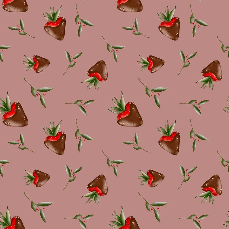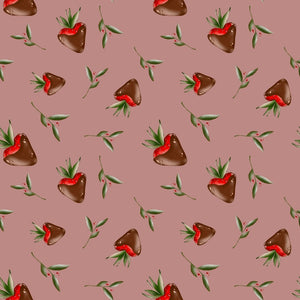 Chocolate Covered Strawberries and Leaves Fabric - Pink