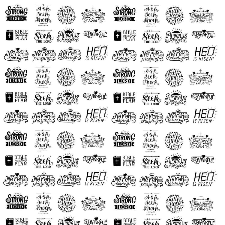 The Christian Quotes #1 Fabric is part of the Black & White Fabric Collection printed by Sewing Parts Online. Digitally Printed on 100% cotton and measures 44-45" wide. Sewing Parts Online prints are only available through Sewing Parts Online, not sold in stores or anywhere else online. * Proudly Manufactured in Dickson, Tennessee USA! *