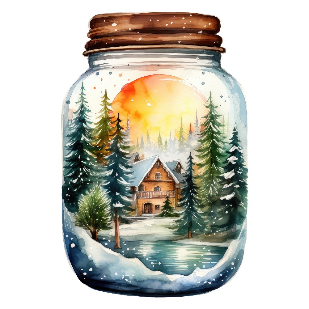 The Christmas Cabin with Sunset in a Jar Fabric Panel is a part of the Christmas in a Jar Fabric Collection printed by Sewing Parts Online. Digitally Printed on 100% cotton.