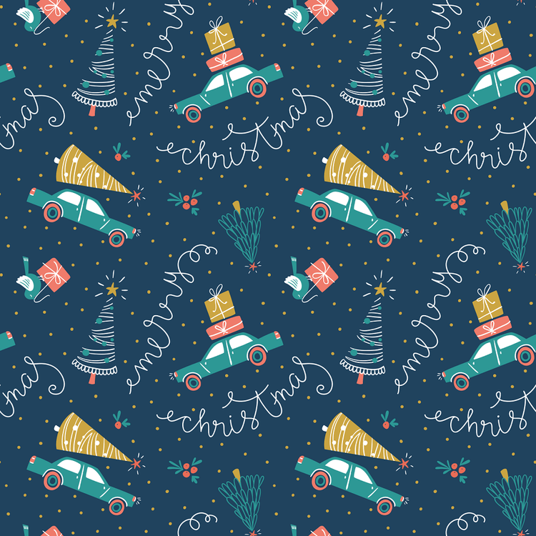 The Navy Christmas Cars, Gifts, & Fir Trees Fabric is a part of the Christmas Fabric Collection printed by Sew Creative Fabrics. Digitally Printed on 100% cotton.