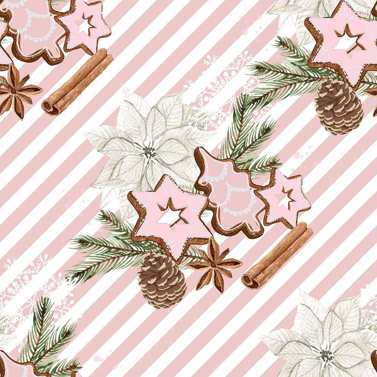 Christmas Elements on Diagonal Stripes Fabric - Pink Details