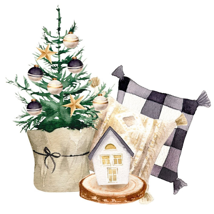 Christmas Farmhouse Gnome Scene #2 Fabric Panel