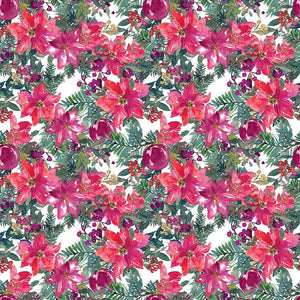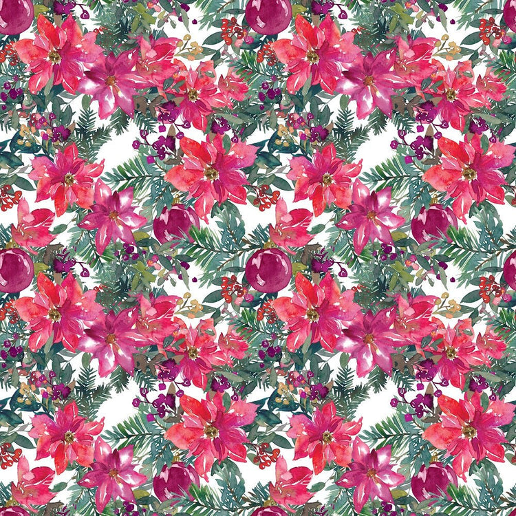 The Christmas Floral Pattern 7 Fabric is part of the Christmas Floral Fabric Collection printed by Sew Creative Fabrics. Digitally Printed on 100% cotton.