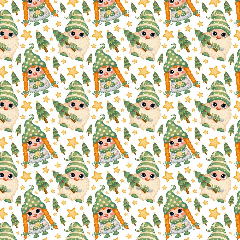 Christmas Gnomes With Stars & Trees Fabric - Green Details