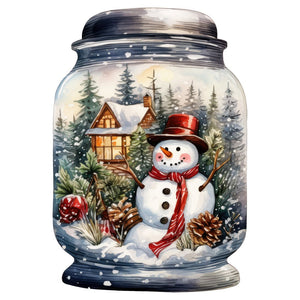 Christmas in a Jar Snowman with Scarf Fabric Panel Details