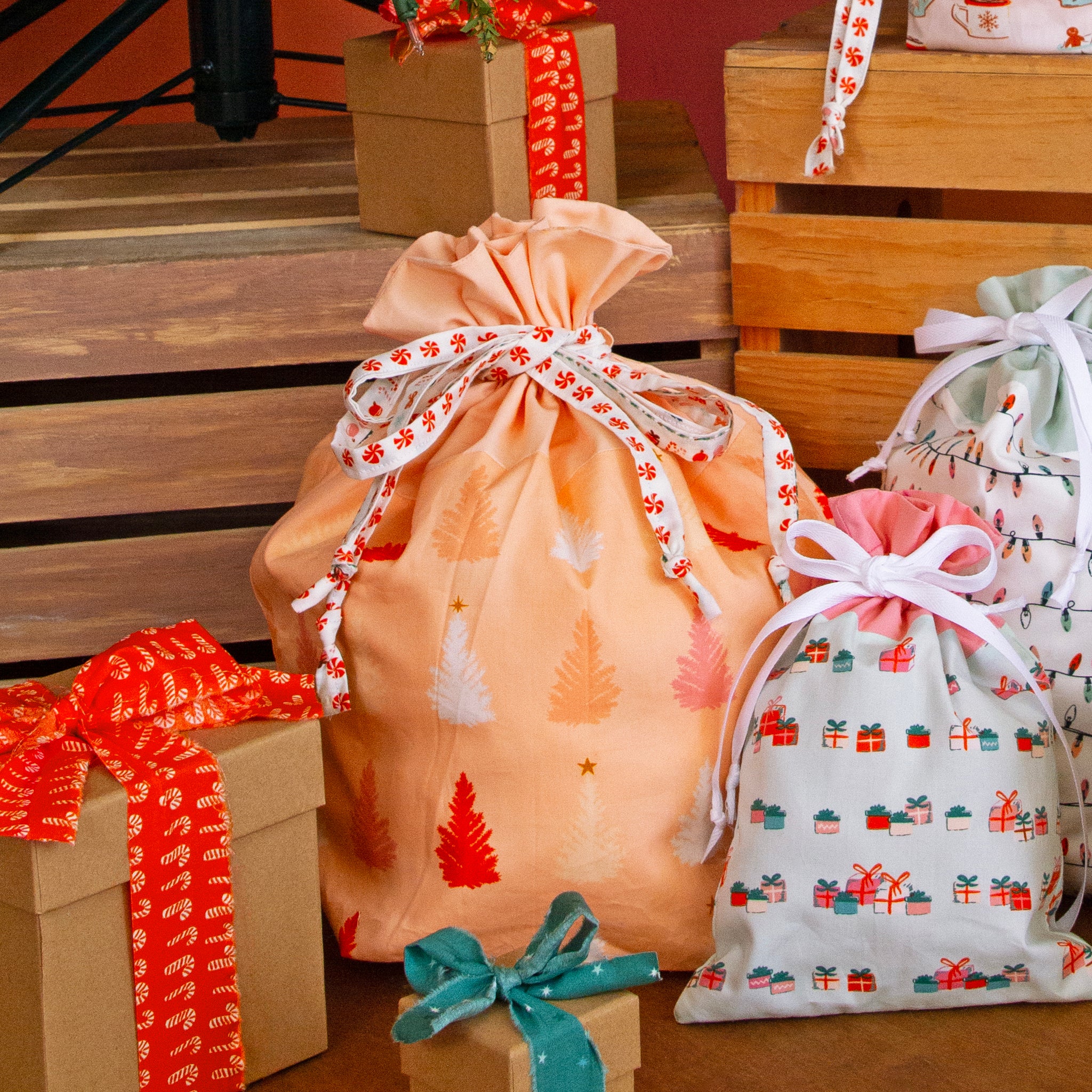 Add a festive splash of whimsy to your holiday sewing with the Tree-mendous Festivities fabric! This cheerful print features rows of stylized Christmas trees in a joyful palette of coral, peach, pink, white, and bright red—all set against a soft peachy background. A sprinkling of golden stars tops a few of the trees, adding just the right touch of sparkle. Whether you're sewing reusable gift bags, cozy holiday decor, or cheerful quilts, this print brings a merry, modern vibe that's sure to make spirits bright.