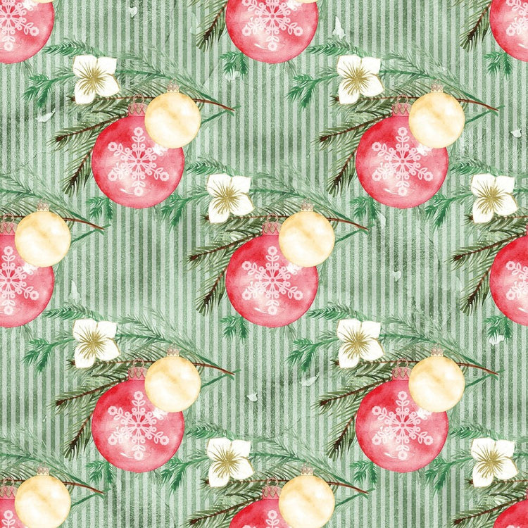 The Green Christmas Joy Ornaments on Stripes Fabric is part of the Christmas Joy Fabric Collection printed by Sew Creative Fabrics. Digitally Printed on 100% cotton.