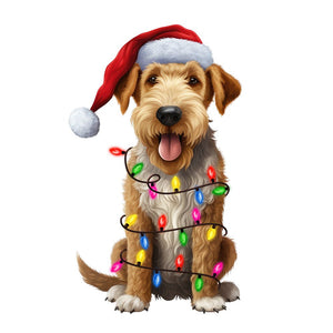 The Christmas Lights & Airedale Terrier Fabric Panel is a part of the Christmas Lights & Dogs Fabric Collection printed by Sewing Parts Online. Digitally Printed on 100% cotton.