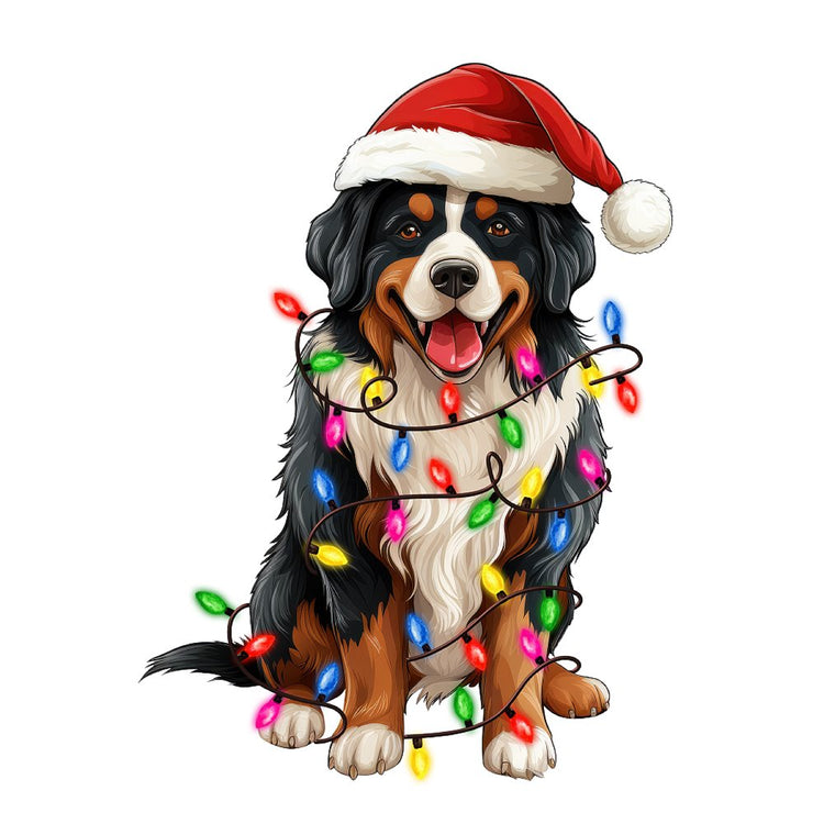 Christmas Lights & Bernese Mountain Dog Fabric Panel