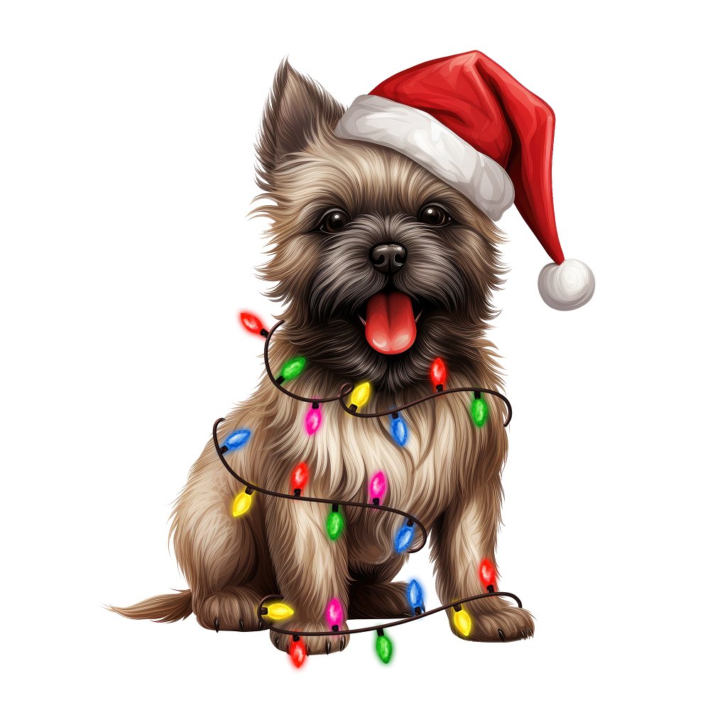 Christmas Lights & Cairn Terrier Fabric Panel