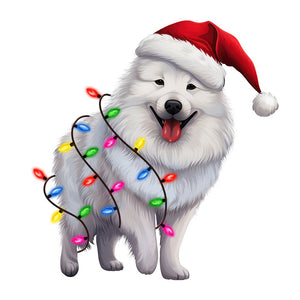 The Christmas Lights & Samoyed Fabric Panel is a part of the Christmas Lights & Dogs Fabric Collection printed by Sewing Parts Online. Digitally Printed on 100% cotton.