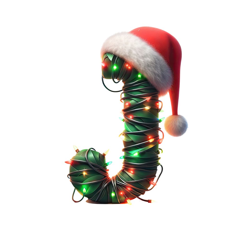 Christmas Lights Wrapped Letter ''J'' Fabric Panel