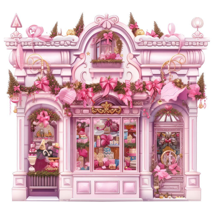 Christmas Luxury Antique Storefront Fabric Panel - Pink