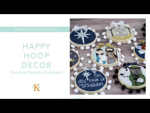 The Christmas Nativity Ornaments, from Kimberbell's Happy Hoop Decor Volume 2, includes 12 embroidered scenes that can be stitched easily in a 4x4 hoop. Each completed embroidery design fits perfectly into one of Kimberbell's 3-1/2in Bamboo Embroidery Hoops #KDKB149 (Sold Separately). These ornaments can be hung on your Christmas tree or on presents. Add embellishments such as fringe, pompoms, and applique glitter to each ornament for a dimensional effect.