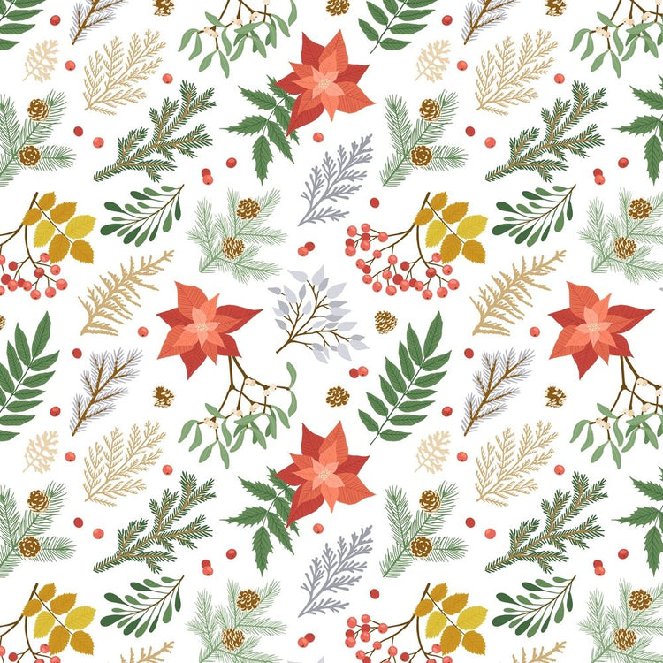 The White Christmas Plants & Flowers Fabric is part of the Simple Christmas Fabric Collection printed by Sew Creative Fabrics. Digitally Printed on 100% cotton.