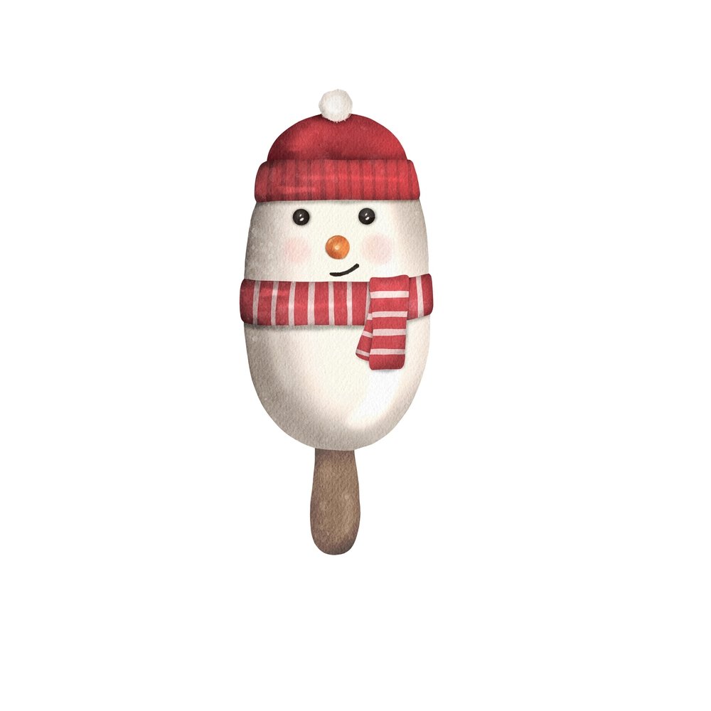 Christmas Snowman Popsicle Fabric Panel - White Details