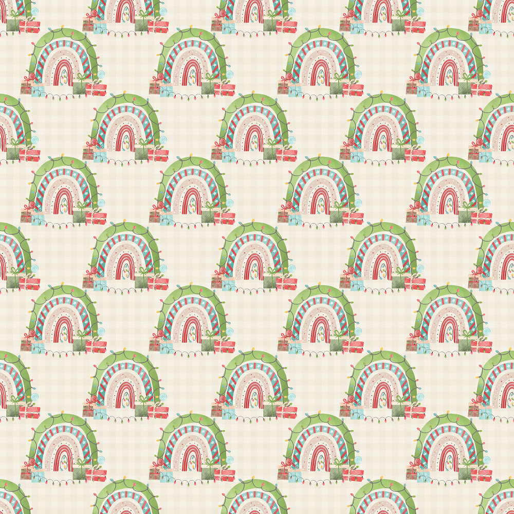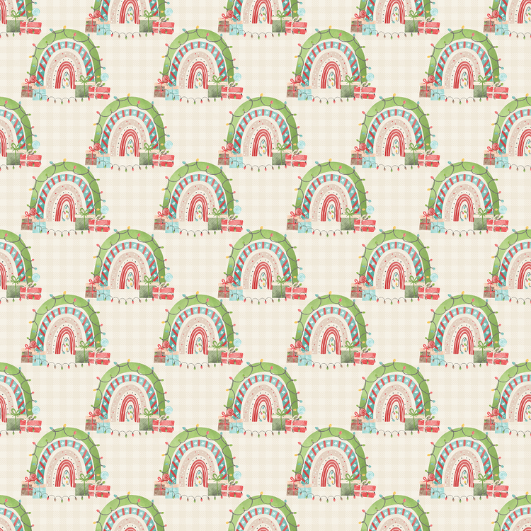 Christmas Themed Rainbow Fabric - Beige