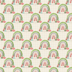 The Beige Christmas Themed Rainbow Fabric is part of the Gnomes For Christmas Fabric Collection printed by Sew Creative Fabrics. Digitally Printed on 100% cotton and measures 43-44" wide.