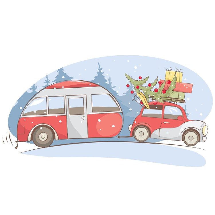 The Christmas Vacation Camper Fabric Panel is part of the Watercolor Christmas Fabric Collection printed by Sewing Parts Online. Digitally Printed on 100% cotton. This panel is available in 6 different sizes: