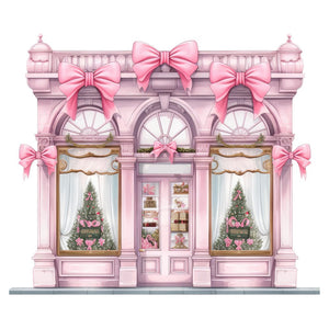 The Christmas Wedding Storefront Fabric Panel - Pink is a part of the Christmas Storefront Fabric Collection printed by Sewing Parts Online. Digitally Printed on 100% cotton.