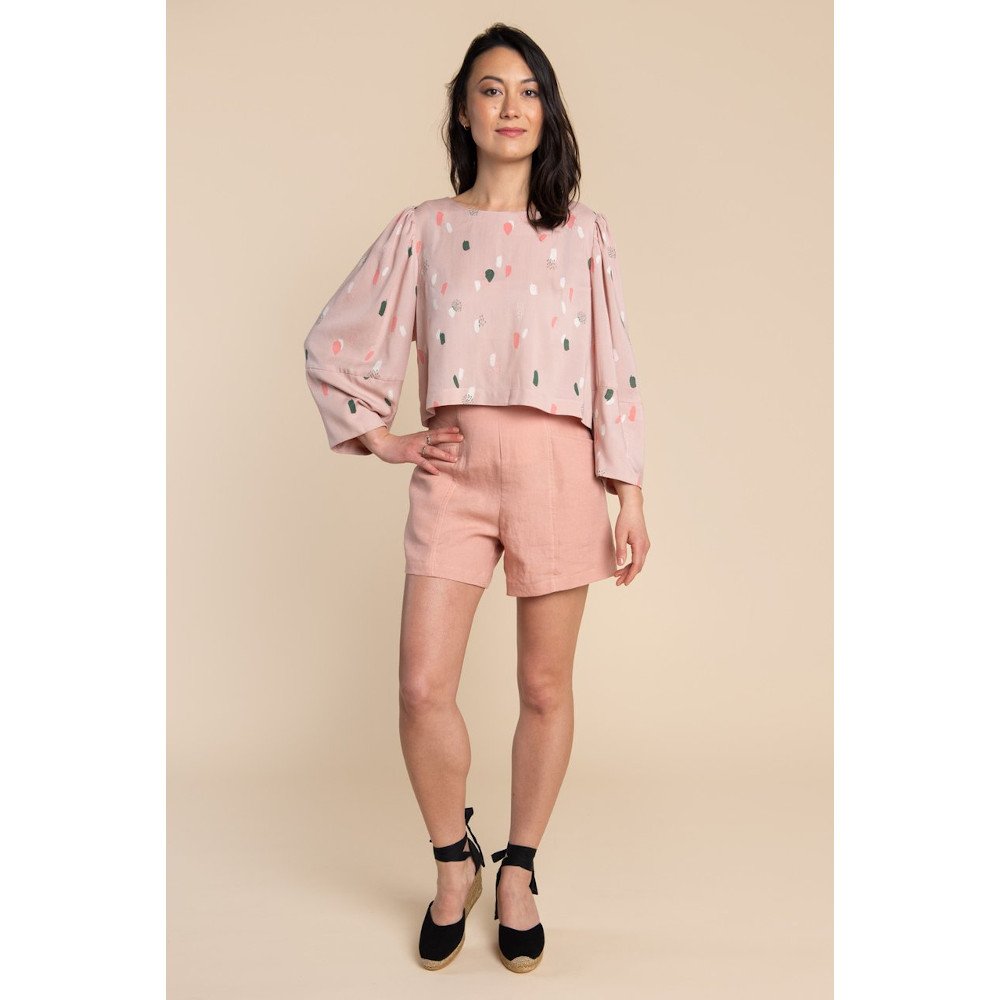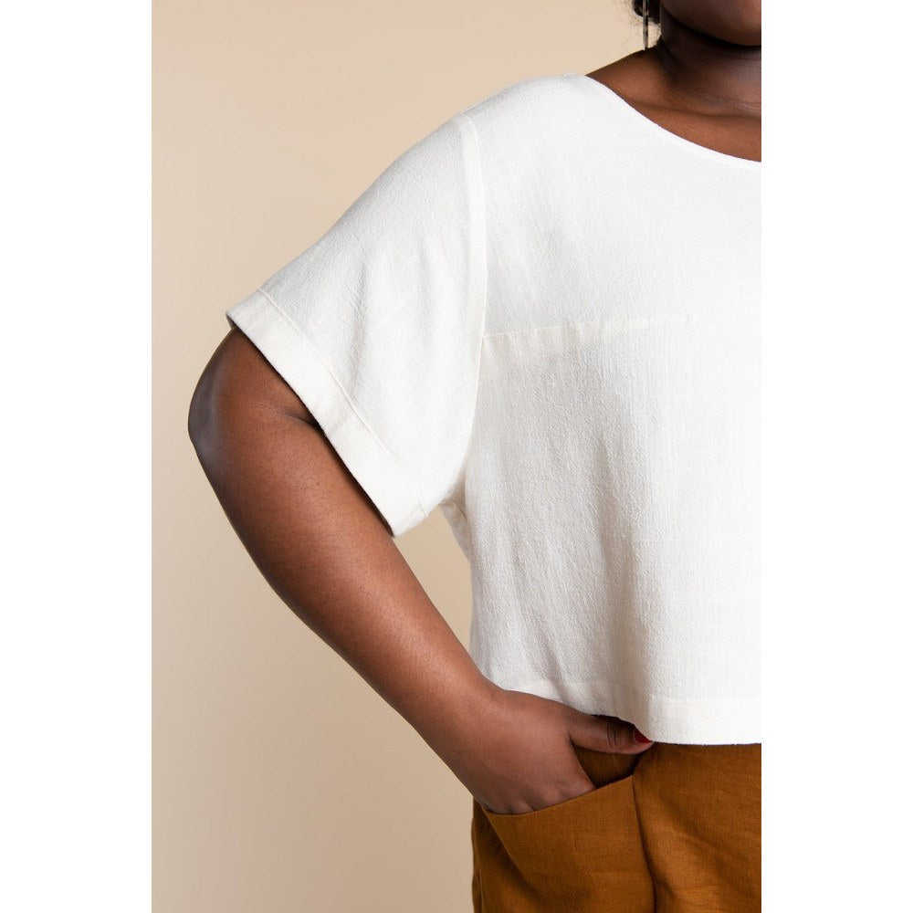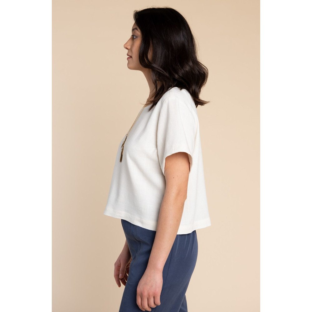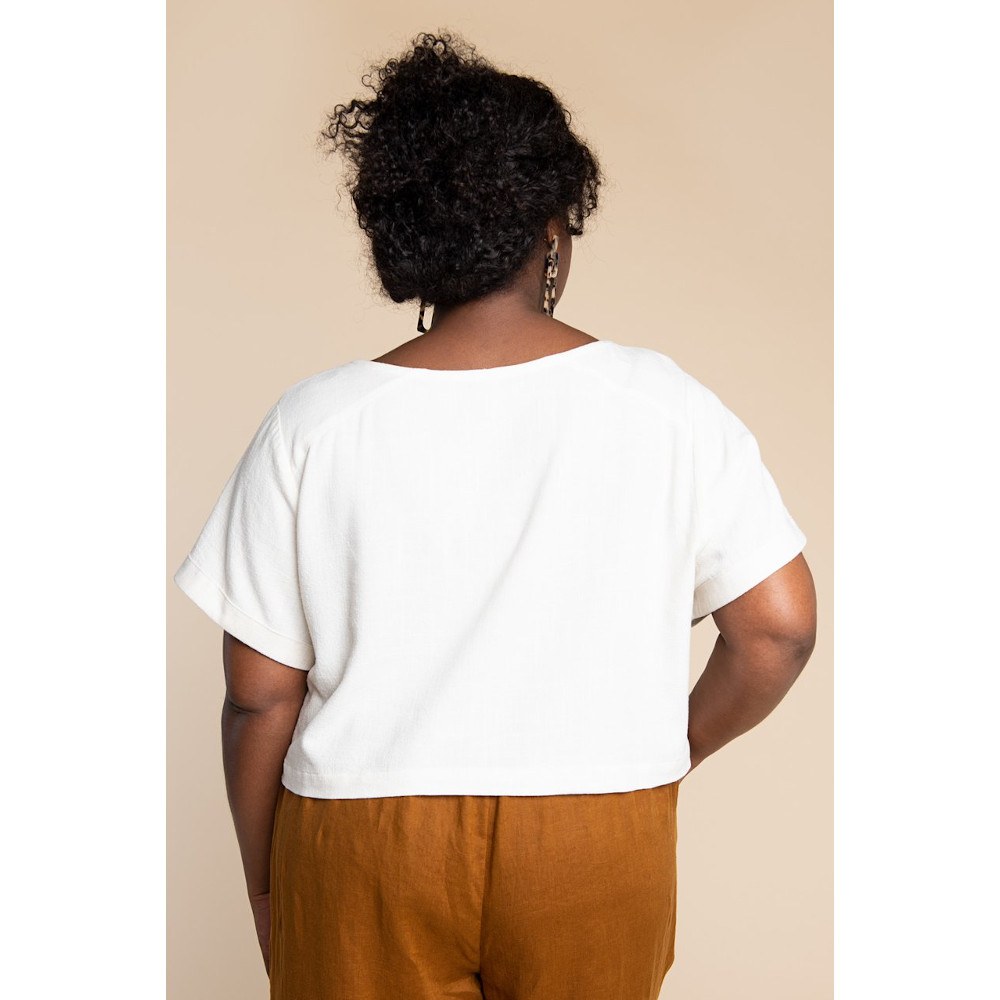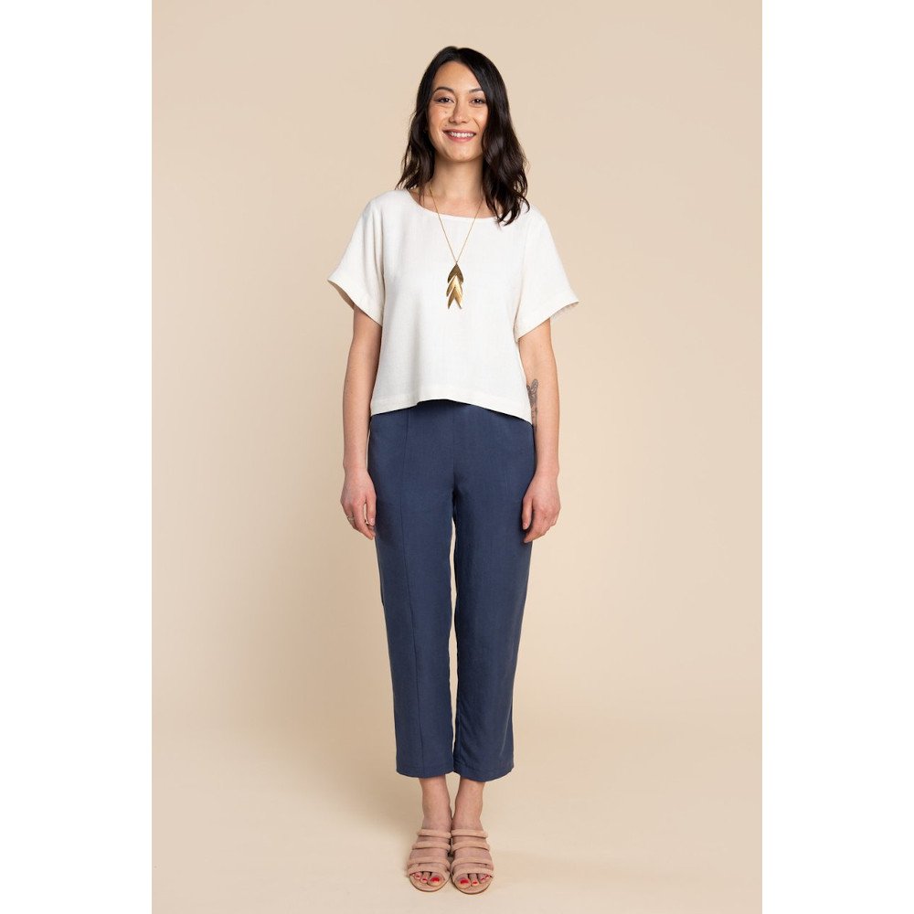 The Cielo Top & Dress Pattern lets you choose between a stylish, gathered long sleeve or a semi-cropped top with a cuffed short sleeve. If you prefer, you can make a chic, relaxed dress with or without inseam pockets. This design, in sizes 0 to 20, accentuates your shape with an angled shoulder yoke, dropped shoulder, and relaxed fit. Choose between a stylized bias binding or faced neckline finish to further customize this garment.