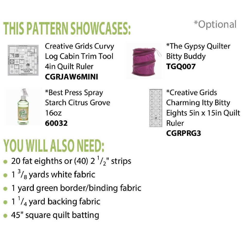 Use this pattern, from Cut Loose Press, to make a 40in x 40in wall quilt. The Circles of Love wall quilt is perfect for home decor or give it as a gift to friends and family. This pattern requires Creative Grids Curvy Log Cabin Trim Tool, and Charming Itty Bitty Eights Ruler.