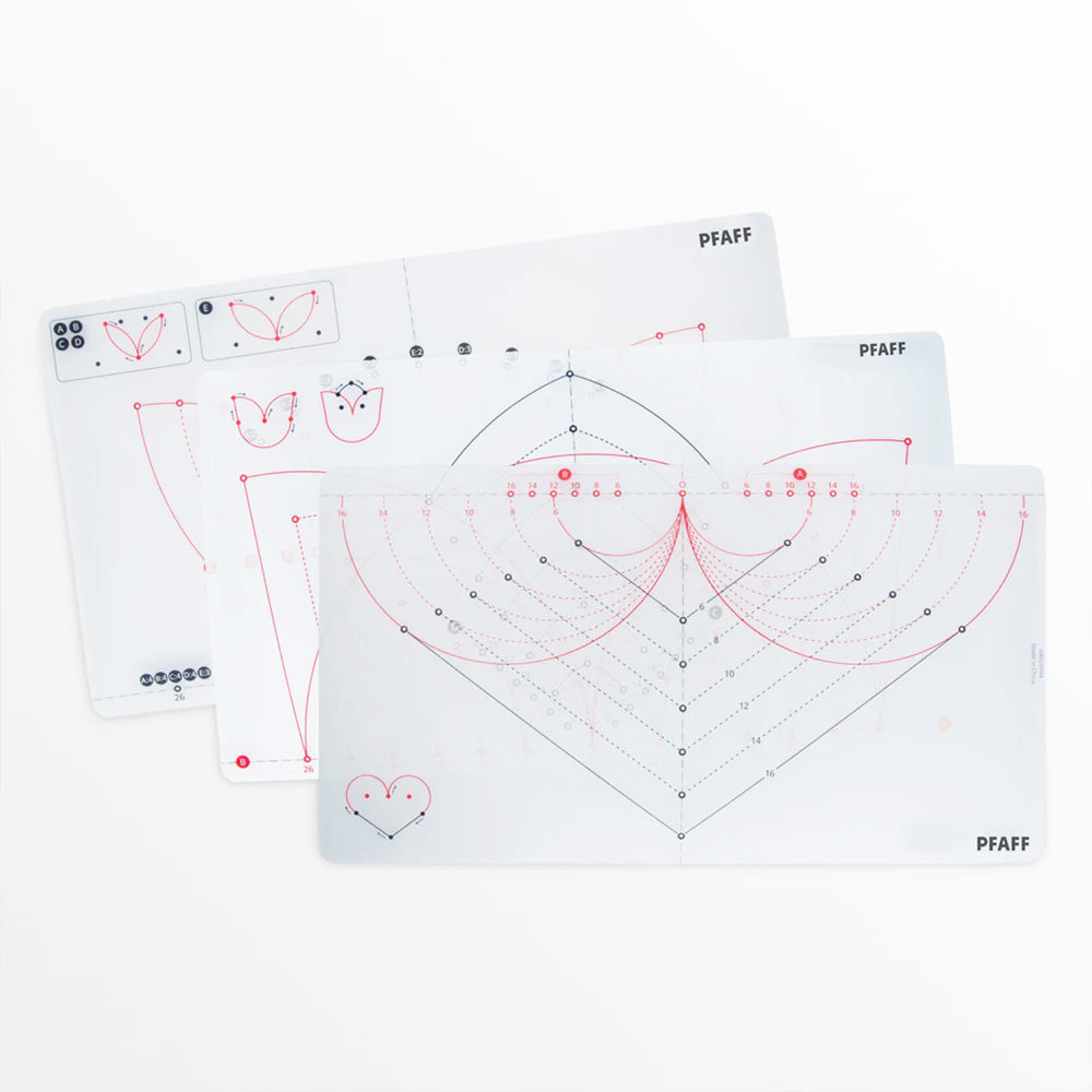 Take your creativity to the next level with the Pfaff Circular Attachment Templates, designed to expand the functionality of your Pfaff Circular Attachment. These innovative templates allow you to create unique shapes such as tulips, leaves, and hearts in multiple sizes—designs not possible with standard circular attachments.
