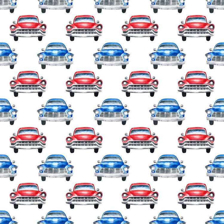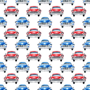 The White Classic Cars Allover Fabric is printed by Sew Creative Fabrics. Digitally Printed on 100% cotton.