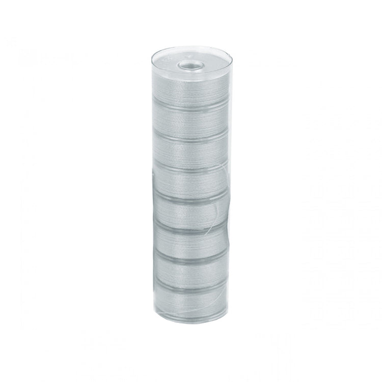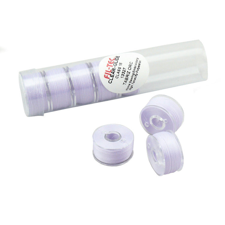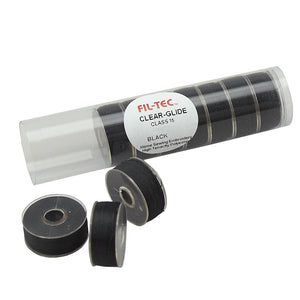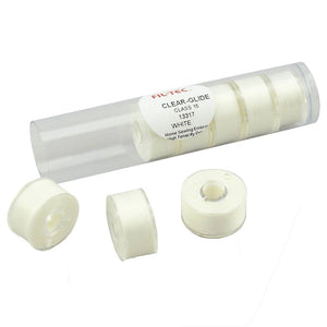 Save time and save thread with Prewound Bobbins. The Fil-Tec Clear Glide Bobbins allows you to both monitor the amount of thread on your bobbin and ensure even winding throughout. The thread on these bobbins are a No. 60 filament polyester. The clear plastic bobbin and storage container protect your bobbin thread from oil and humidity, thereby maintaining its original quality and structure. Each pack contains eight pre-wound bobbins with 135 yards of thread. These Class 15/A bobbins are suitable for most domestic sewing machines. Fil-tec products are made in the USA.