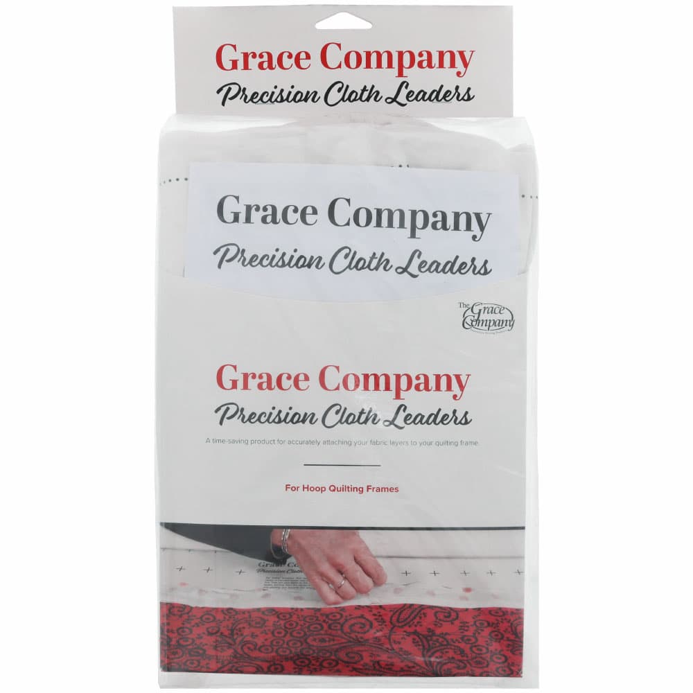 The Grace Company's Cloth Leader Kit includes two Cloth Leaders and a velcro attachment kit. Each leader measures 88 inches long, and features printed gridlines. These Cloth Leaders are intended for use with the Q-Zone-Queen Quilting Frame (quilting table).