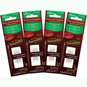 Use Clover's Black Gold Quilting Needles when hand sewing for superior stitching capabilities. These needles are some of the finest and highest quality needles you can use when hand stitching. Black Gold Quilting Needles are 30% more friction-resistant than other conventional hand needles. They needles are polished along the axis and are coated in ultra-thin black plating to help prevent them from rusting. Black Gold Quilting Needles are durable and ideal for all kinds of projects. Six needles are included in each package.