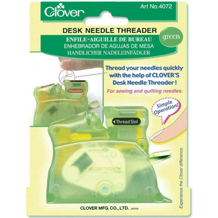 The Clover Desk Needle Threader can thread both thick and fine needles with a simple push of a button. Just insert the thread and hold it gently while inserting the needle eye into the needle hole. Then press the lever once, pull the needle, and cut the thread! This tool is a must for every sewing room.